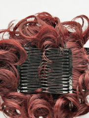 Příčesek je vyroben ze syntetických vláken a nasazuje se pomocí dvojice hřebínků, které zajišťují pevné a stabilní uchycení k vlastním vlasům.