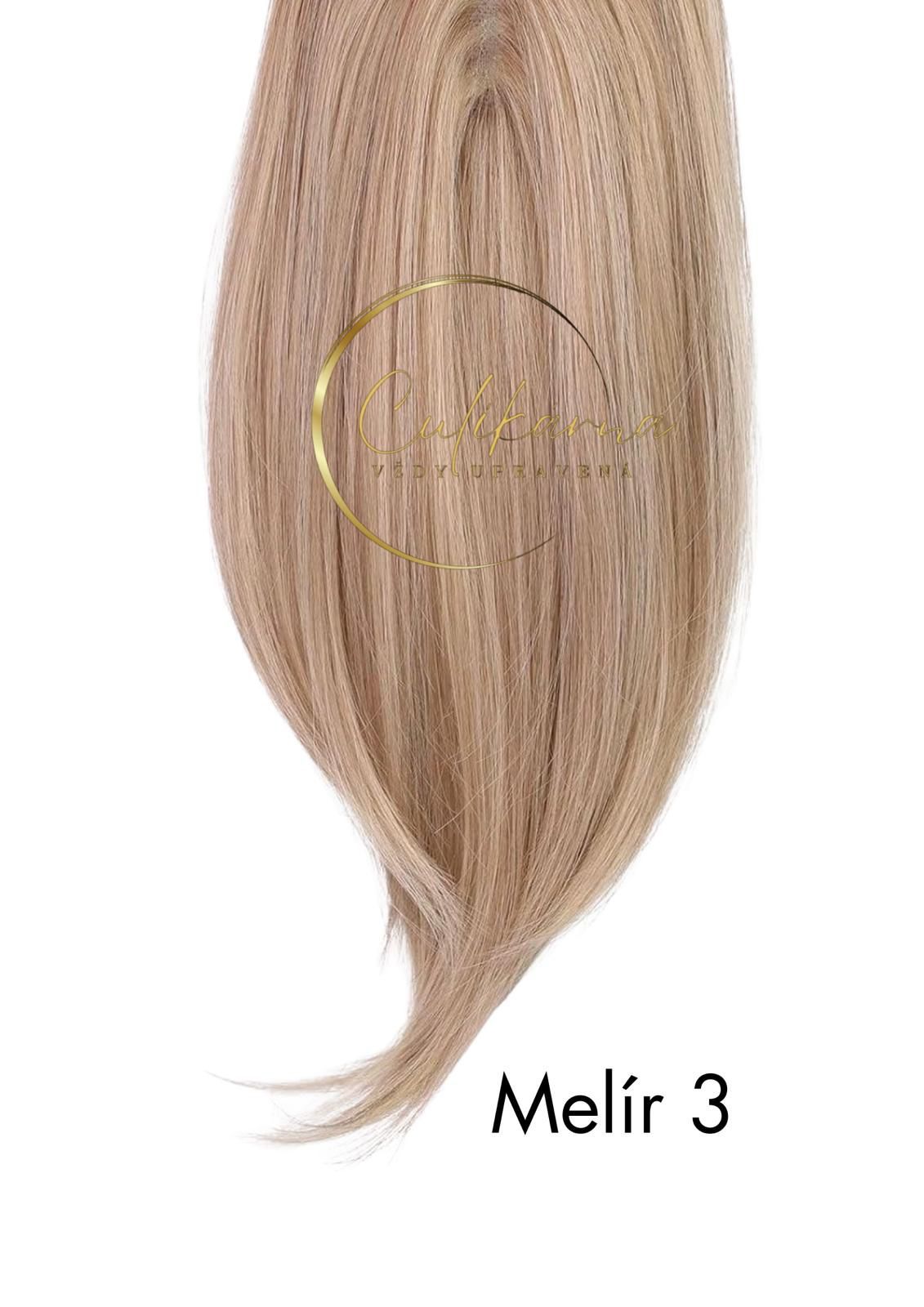 Přibližně 50 cm dlouhé prameny se snadno propojí s delšími vlasy a vytvoří přirozený pád.