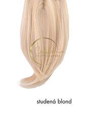 Přibližně 50 cm dlouhé prameny se snadno propojí s delšími vlasy a vytvoří přirozený pád.