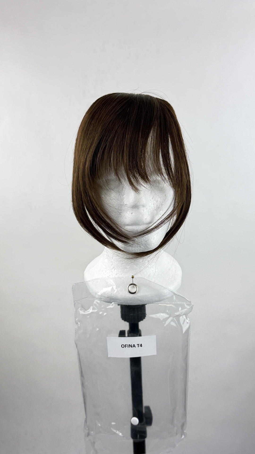 Ofinka je kombinací strojového zpracování a ručního poutkování, díky čemuž působí jemně, lehce a krásně splývá s vlastními vlasy. Upevňuje se pomocí tří pevných clip-in sponek přímo do přední partie vlasů a drží bezpečně po celý den.