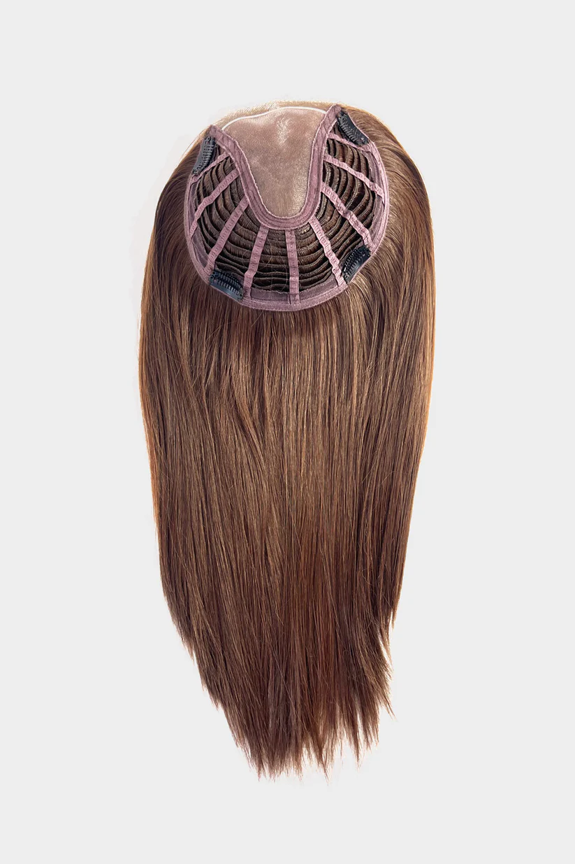 Díky větší základně skvěle pokryje horní partii hlavy a pomůže sjednotit účes, ať už řešíte jemné prořídnutí, nebo jen chcete výraznější objem. Vlasy působí upraveně a drží svůj tvar, takže se nemusíte zabývat každodenním stylingem – topper je připraven k nošení prakticky ihned.