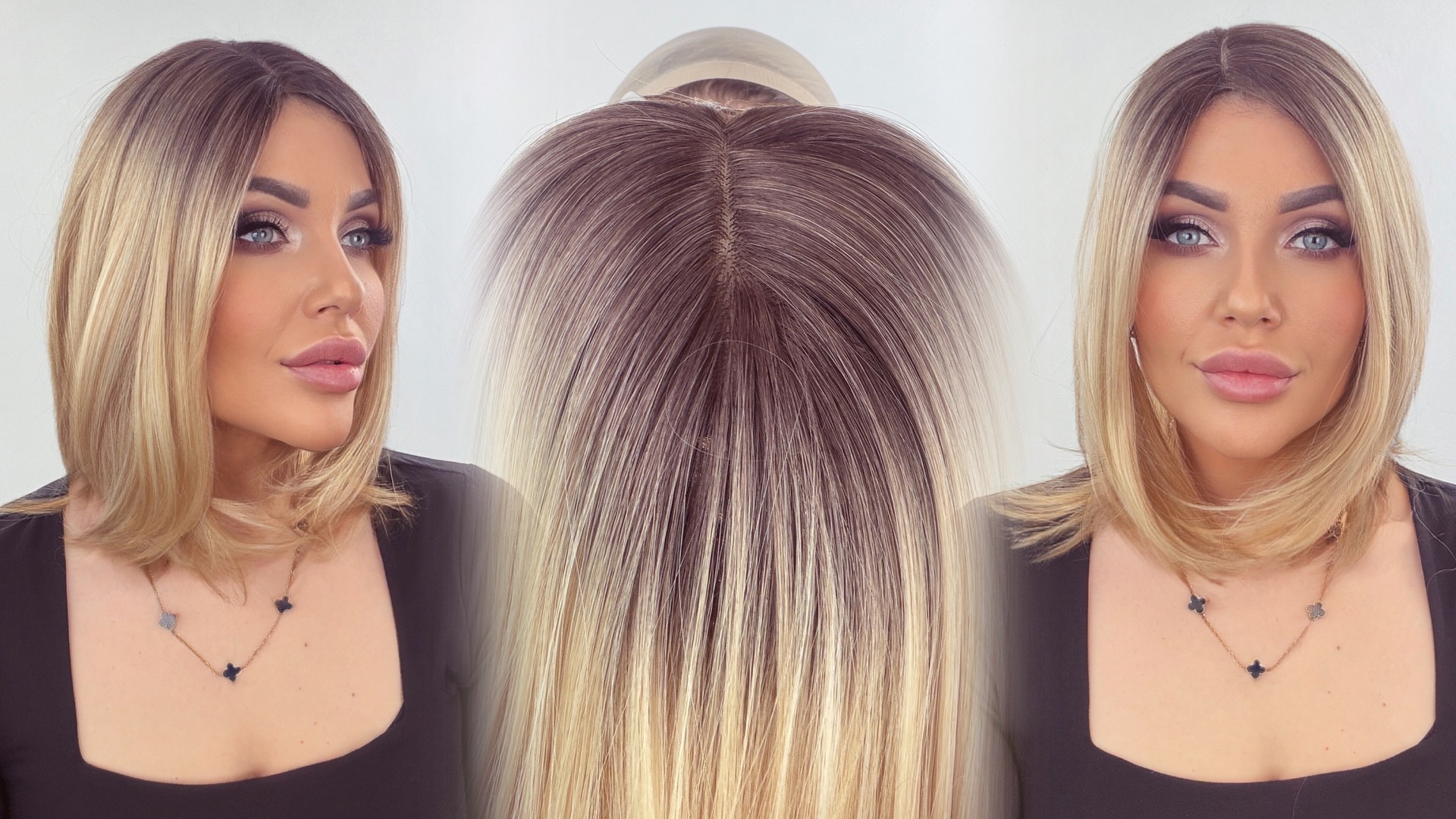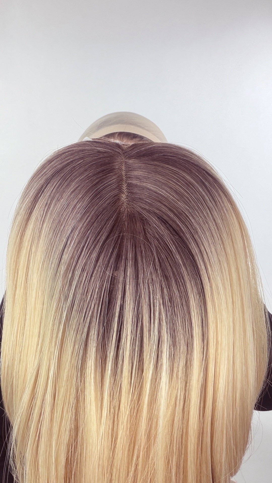 - Jemně upraviňte vlasy přes topper — pro přirozený přechod.