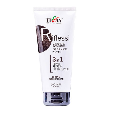 Tmavě hnědá barvící vyživující maska s jedinečným složením. Obsahuje přímé barevné mikro pigmenty. Maska je určena jak pro přírodní, tak melírované i barvené vlasy. RIFLESSI rozzáří jednotlivé prameny vlasů i přechody mezi jednotlivými barevnými odstíny. RIFLESSI mohou docílit decentní pastelové barvy až po velmi výrazné, trendy odstíny na světlých a zesvětlených vlasech.
